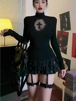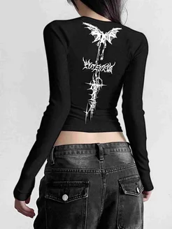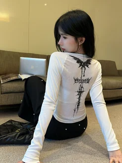 Лонгслив серый кпоп Y2K в рубчик с длинными рукавами