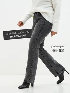 Прямые джинсы на резинке больших размеров
