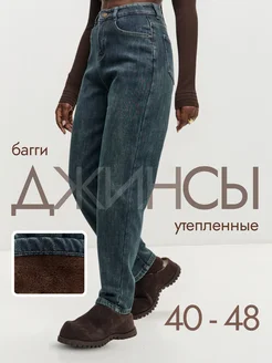 Джинсы багги прямые зауженные утепленные