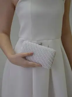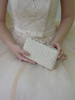 Клатч невесты белый свадебный жемчужный, на свадьбу