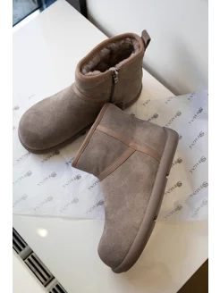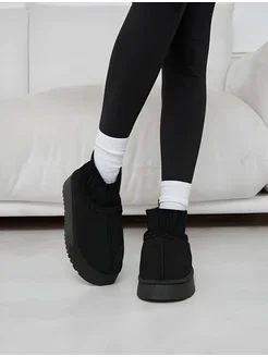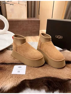 Брендовые угги на толстой подошве, полусапожки с мехом