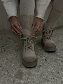 Брендовые ботинки на толстой подошве, тимберленды с мехом