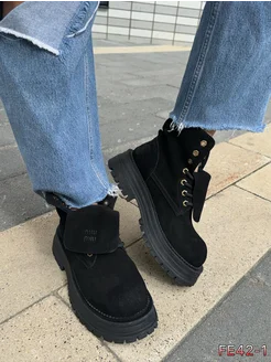 Ботинки модные на толстой подошве, тимберленды с мехом