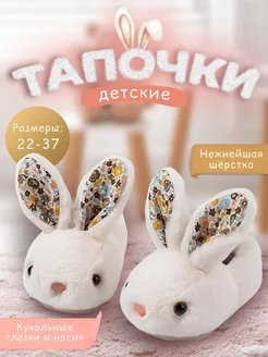 Детские тапочки зайцы с нескользящей подошвой из экомеха