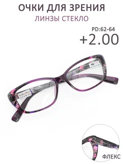 Очки для зрения стеклянные линзы +2.00