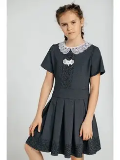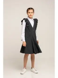 Сарафан школьный серый для девочки на лямках крылья бабочки