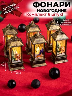 Новогодний фонарь игрушка елочная, 6 шт бронза