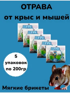 Отрава пищевая приманка для крыс и мышей 200г (5 шт.)
