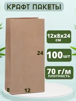 Крафт пакет бумажный упаковочный 12х8х24 см 100 шт