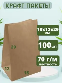 Крафт пакет упаковочный бумажный 18х12х29 см 100 шт