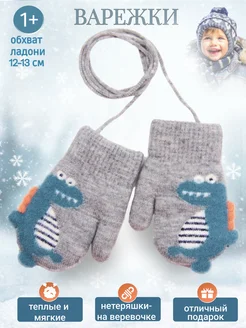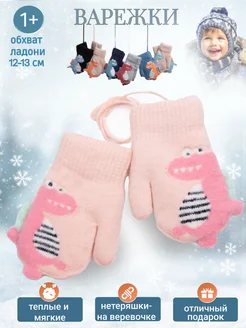 Варежки зимние демисезонные на веревке 1 - 3 года