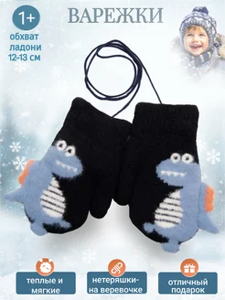 Варежки теплые детские на веревочке
