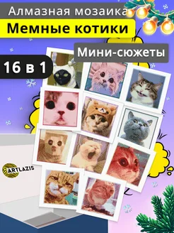 Алмазная мозаика подарочный набор мемные коты 16 в 1