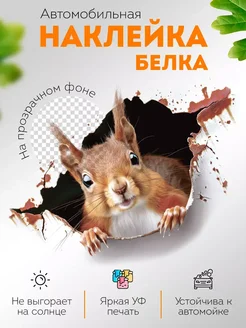 Наклейка автомобильная Белка выглядывает на прозрачном фоне