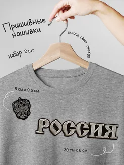 Нашивка пришивная большая "Россия (герб и надпись)" 2шт