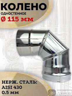 Колено одностенное для дымохода 90 градусов D 115 нерж