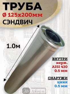 Сэндвич дымоход 1,0 м D 125x200 мм (Цинк0,5 - Нерж0,5)