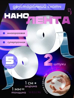 Клейкая лента многоразовая двусторонняя 5м нано скотч 3 шт