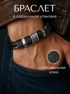 Браслет черный кожаный