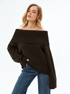 Свитер укороченный с открытыми плечами