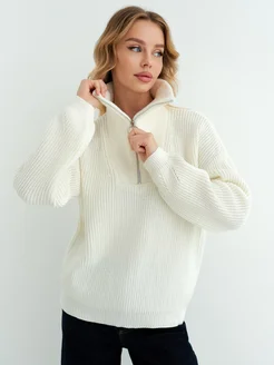 Свитер вязаный с горлом на молнии оверсайз