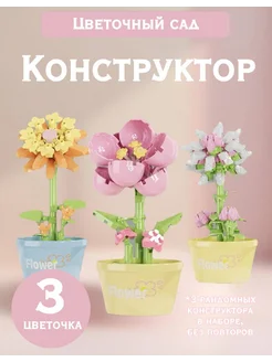 Конструктор 3D Цветы подарочный набор для девочек - 3 шт