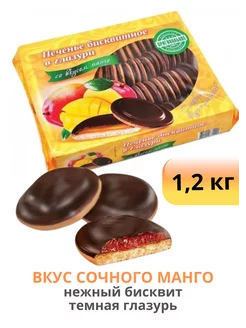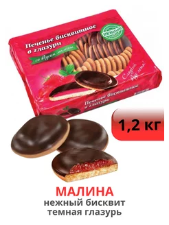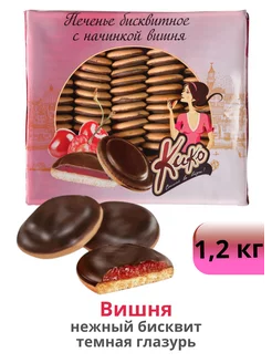 Печенье бисквитное вишня темная глазурь 1,2кг