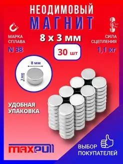 Неодимовые магниты мощные диски 8х3мм. 30 шт