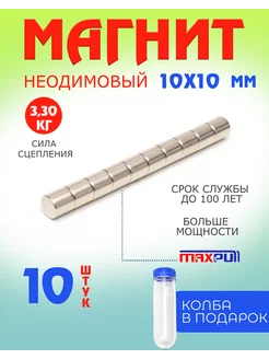 Неодимовые мощные магниты диски 10х10. 10 шт