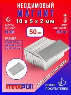 Неодимовые магниты прямоугольники. 10х5х2мм. 50шт