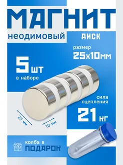 Неодимовые магниты 25х10 мм, набор 5 шт
