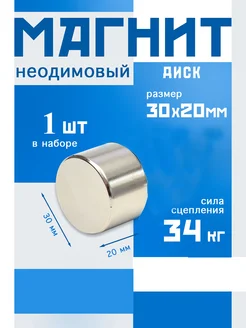 Неодимовые магниты 30х20 мм, набор 1 шт