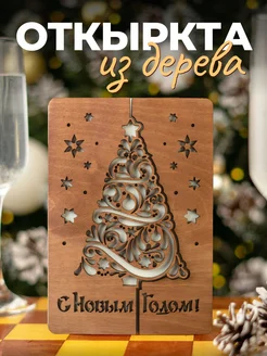 Открытка новогодняя деревянная l Сувениры Новый Год 2026