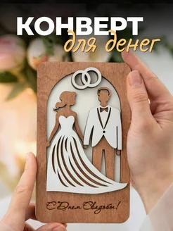 Деревянный конверт для денег на свадьбу, подарок молодоженам