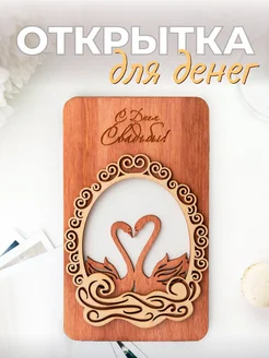 Деревянная открытка для денег на свадьбу Молодоженам