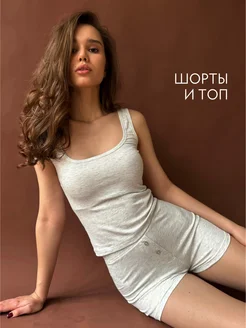 Пижама с шортами и топом хлопок домашняя