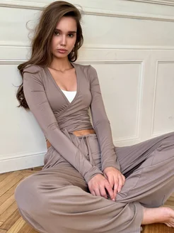 Брюки джоггеры широкие на резинке тонкие оверсайз