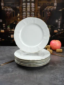 Набор тарелок Белый узор Золотая кайма 19 см 6 шт
