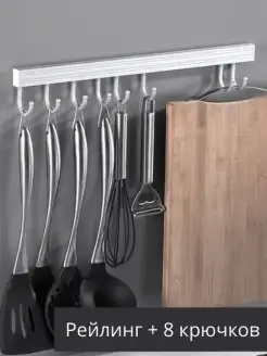 Серебристый рейлинг для кухни с 8-ю крючками без сверления