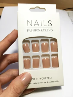 Короткие накладные ногти квадрат с клеем в школу