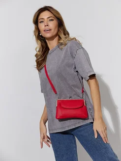 Клатч - кошелек большой на плечо из экокожи серый