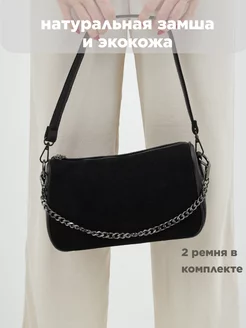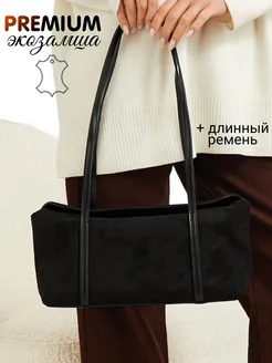 Сумка багет через плечо замшевая