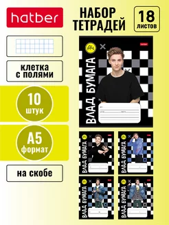 Тетрадь 18 листов клетка 5 дизайнов 10 шт. мерч