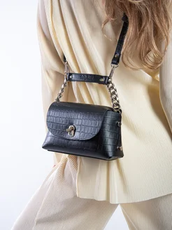 Сумка маленькая черная на цепочке кросс боди через плечо