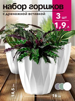 Набор кашпо для цветов Tiko с дренажной вставкой 1,9 л 3 шт