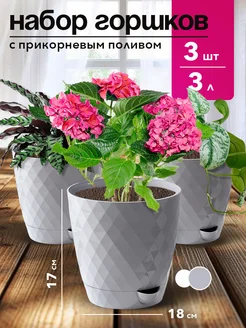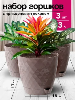 Горшок для цветов с поддоном нижний полив набор 3 л 3 шт