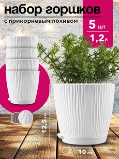 Горшок для цветов с пристежным поддоном 1,2 л набор 5 шт