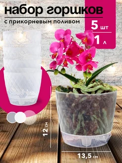 Горшок для цветов с поддоном прозрачный, набор 1 л 5 шт