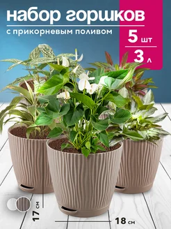 Горшок для цветов с пристежным поддоном 3 л набор 5 шт