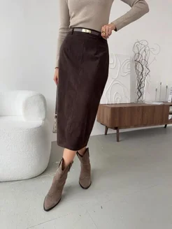 Юбка вельветовая карандаш с разрезом